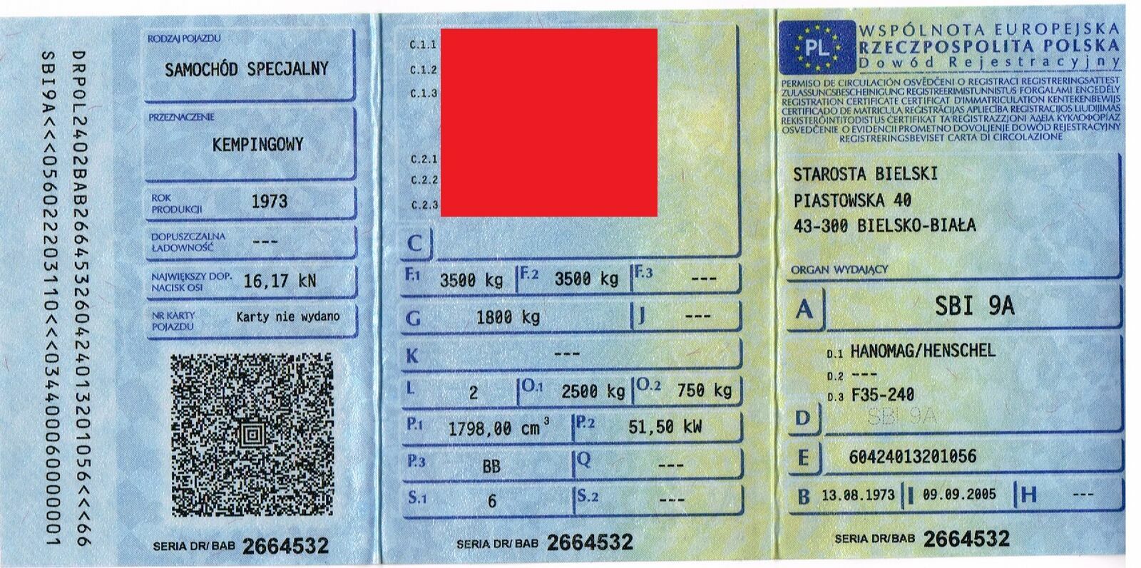 Masa własna 1800, DMC 3500 - czyli ładowność 1700 kg !!!